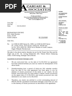 For a secondary property, the delivery of vacant possession depends on the payment of the balance purchase price for the property and as well as the agreed bumi lot and malay reserve land: